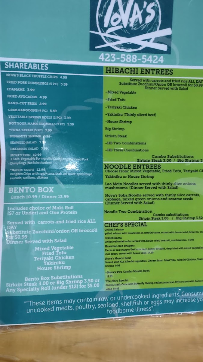 Welcome to Nova’s Sushi Bar and Grille, a vibrant culinary gem nestled in the heart of Greeneville, TN. This establishment has quickly become a favorite for sushi lovers and food enthusiasts alike, offering a delightful menu that marries traditional Japanese flavors with unique twists.